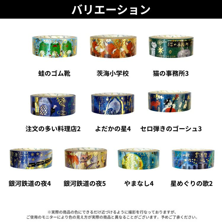 他の画像を見る 「宮沢賢治幻燈館」シリーズ第1弾の箔押しマスキングテープ シール堂 きらぴかマスキングテープ 宮沢賢治幻燈館 15mm幅 vol.1 箔押し 和紙 価格 ¥ 330 税込 カートに入れる お気に入りに登録する