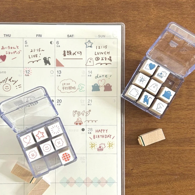 マスキングテープと一緒にかわいく使えるはんこ【ますてのあいぼう】おうちにある沢山のマスキングテープをかわいく使える♪日記や手帳を誰でもかわいくデコできます♪