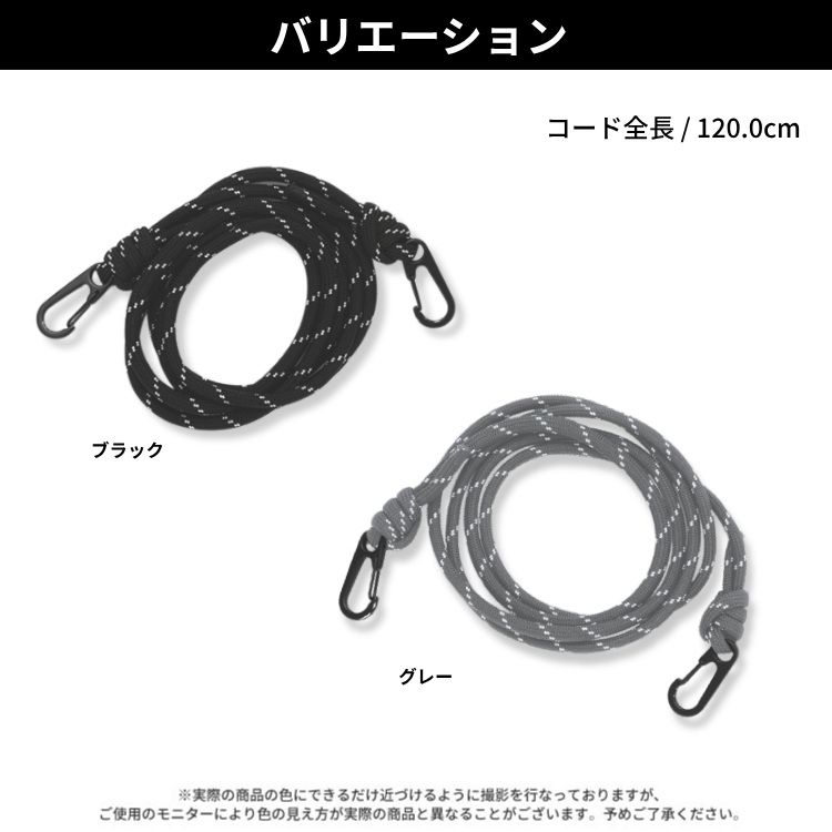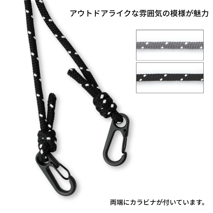 両端にカラビナが付いた汎用的なコードストラップ(ショルダーストラップ)です。