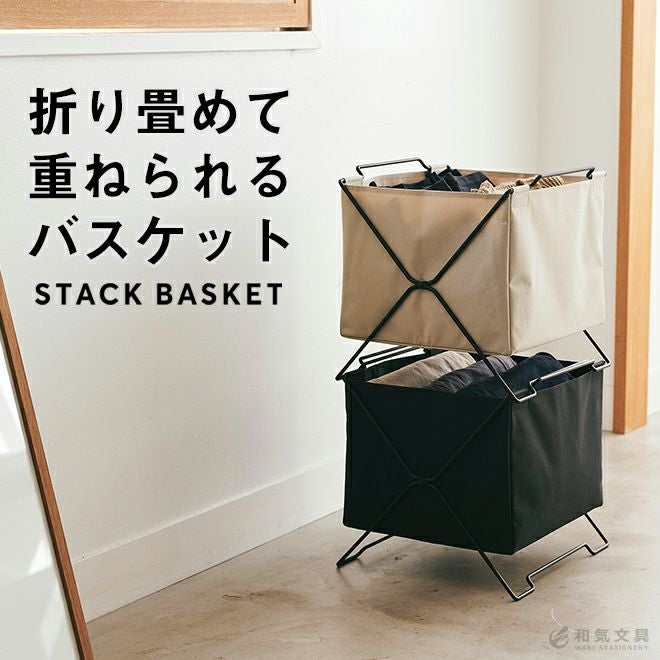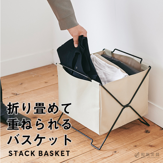 一時置きや投げ込み収納にピッタリな「スタックバスケット」。衣類やおもちゃ、日用品、A4サイズのファイルなどをサッと簡単に収納できます。