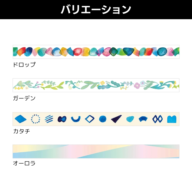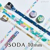 貼ってはがせる透フィルム素材のマスキングテープ「SODA」曲面にも貼りやすく、手帳やラッピングはもちろん幅広いデコレーションに活用できます。