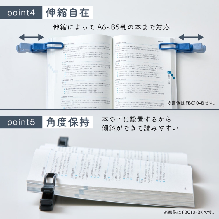 A6~B5判まで対応し、厚みのある本もしっかり固定できます。