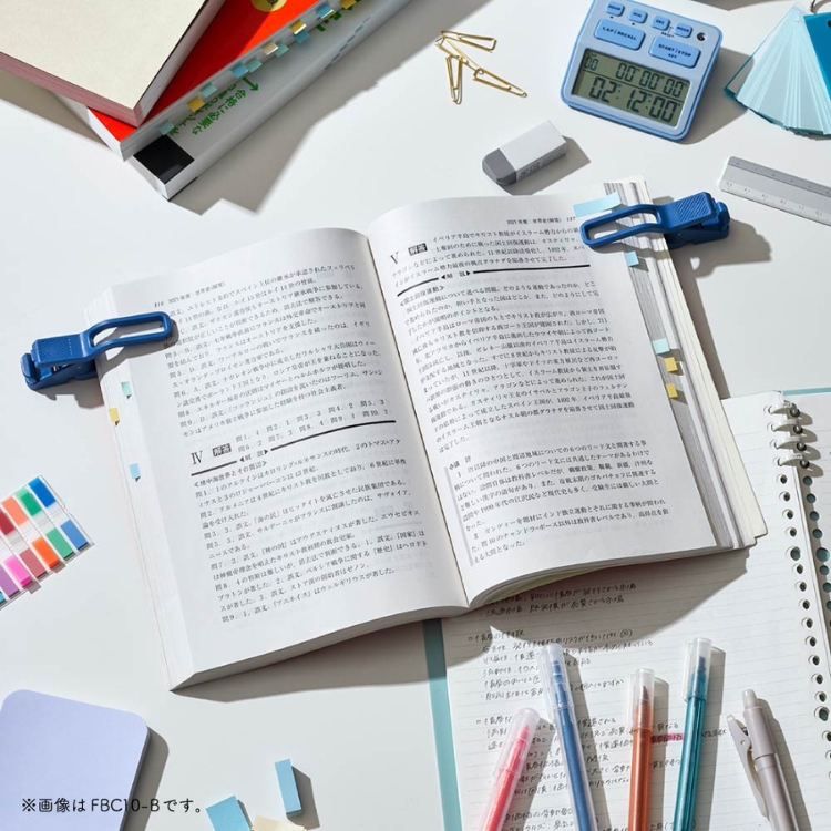 クリップの片側を固定することで、スムーズにページがめくれるので学習の集中を妨げません。また折りたためるため、ペンポーチなどにコンパクトに収納できます。