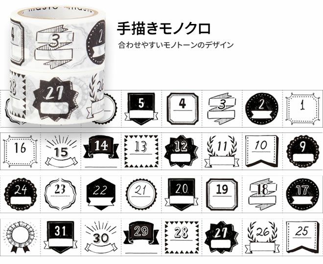 マークス MARKS 水性ペンで書けるマスキングテープ ミシン目入り 手帳デコ 日付柄 2巻セット