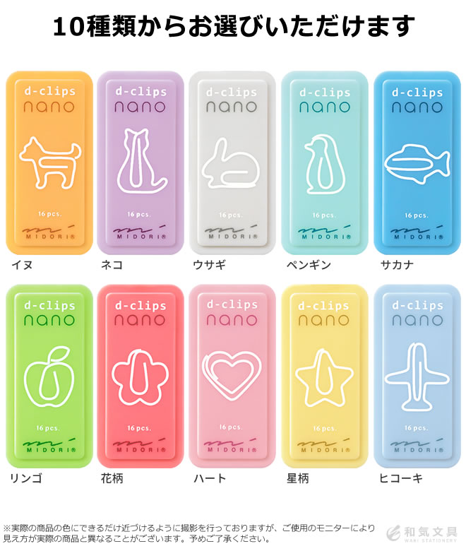デスクワークや、様々な場面で活躍するゼムクリップに人気のモチーフをデザインしました。錆びに強いステンレス製のクリップが、カラフルなスライドケースに入っています。使い終わった後は、ちょっとした小物入れなどとしてもお使いいただけます。
