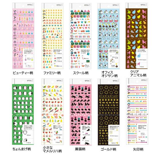 ミドリ midori 手帳用シール 82140006スクール柄・82141006オフィスオジサン柄・82145006黒猫柄・82147006矢印柄
