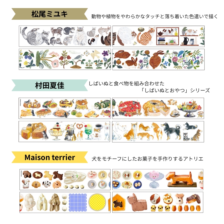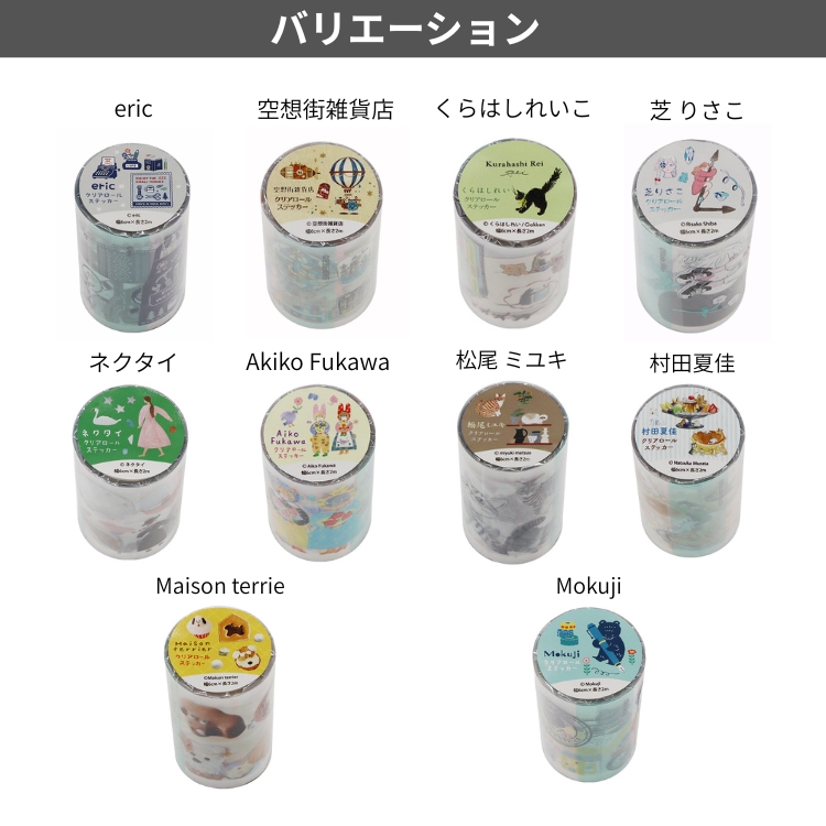 人気クリエイターのイラストを贅沢にデザインした、クリアロールステッカー