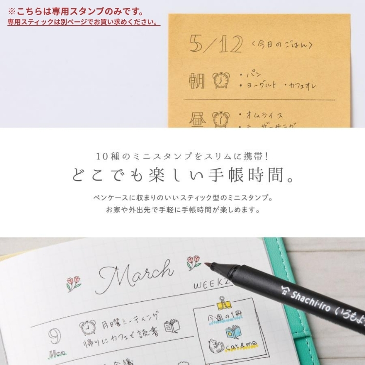 10種の絵柄のスタンプを一つにできる専用スティック。