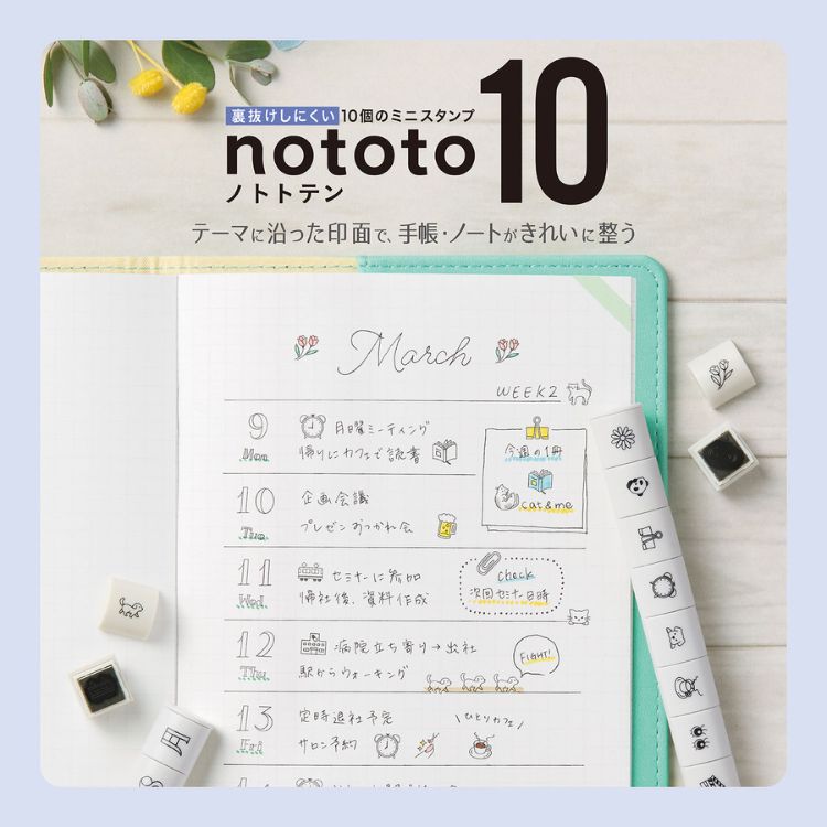 12のテーマから選べる『nototo10 専用スタンプ』豊富なラインナップからお好みや用途に合わせてお選びいただけます。