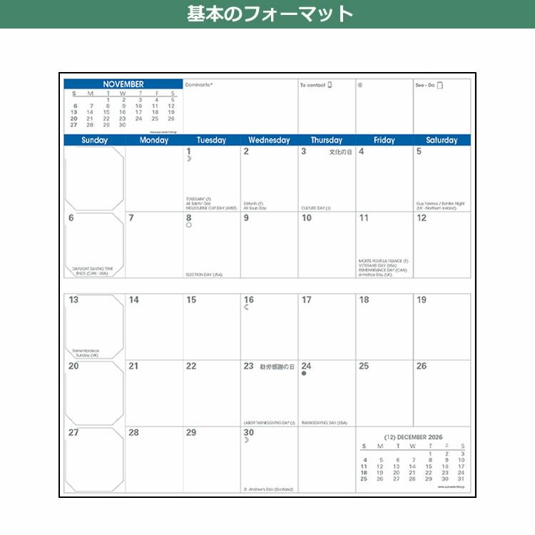 他の画像を見る クオバディスといえばこのユニークな正方形サイズ 2026年 手帳 クオバディス 週間 バーチカル[時間軸タテ]16×16cm正方形 エグゼクティブノート クラブ【メール便送料無料】 / 名入れ可能[有料] メール便無料 価格 ¥ 5,060 税込 詳細を見る お気に入りに登録する