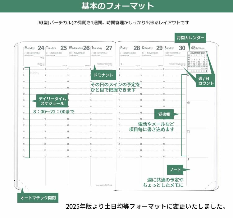 他の画像を見る 仕事やプライベート、家族の予定までしっかり管理 2026年 手帳 クオバディス 週間 バーチカル[時間軸タテ]16×16cm正方形 タイムアンドライフ 価格 ¥ 5,940 税込 カートに入れる お気に入りに登録する