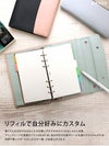 クリーム色の紙にゴールドの縁取りを施した華やかなリフィル。6mm罫線で文字も描きやすく、手帳の中でもひときわ目立つ存在感を放ちます。