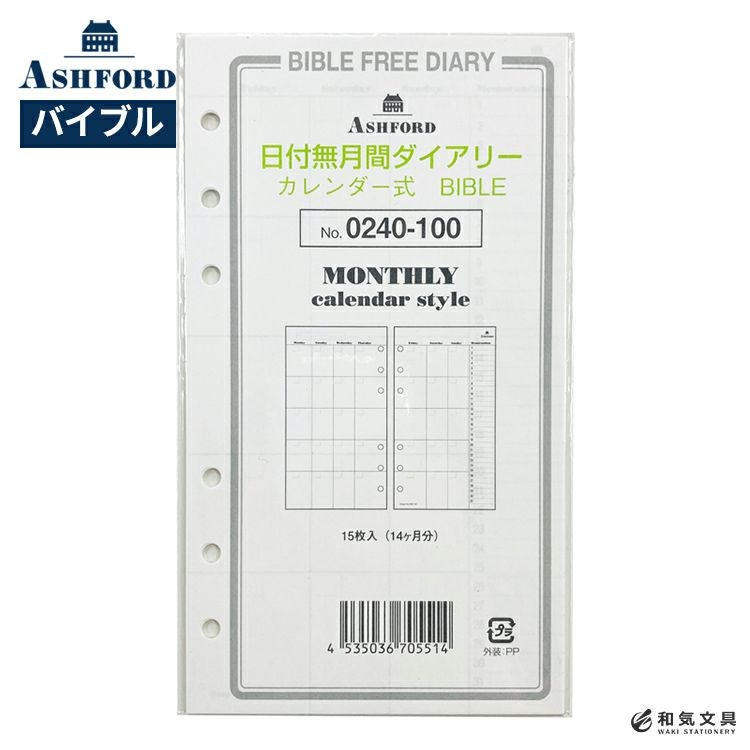アシュフォード ASHFORD システム手帳 バイブル リフィル 日付無週間ダイアリー セパレイト式 BIBLE