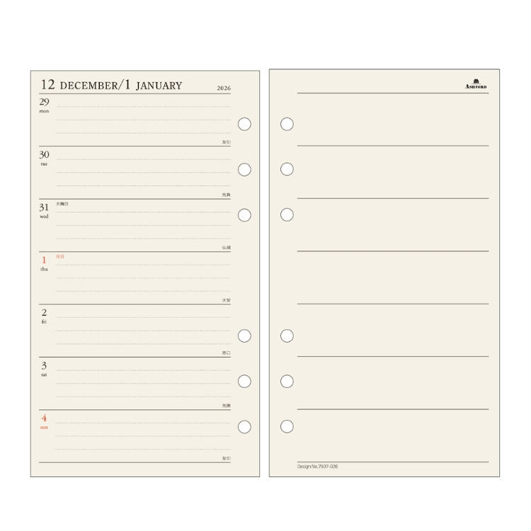 アシュフォード BIBLE リフィル 週間レフト 日曜始まり