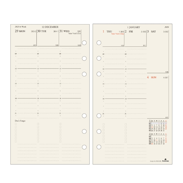 アシュフォード BIBLE リフィル 週間レフト 日曜始まり