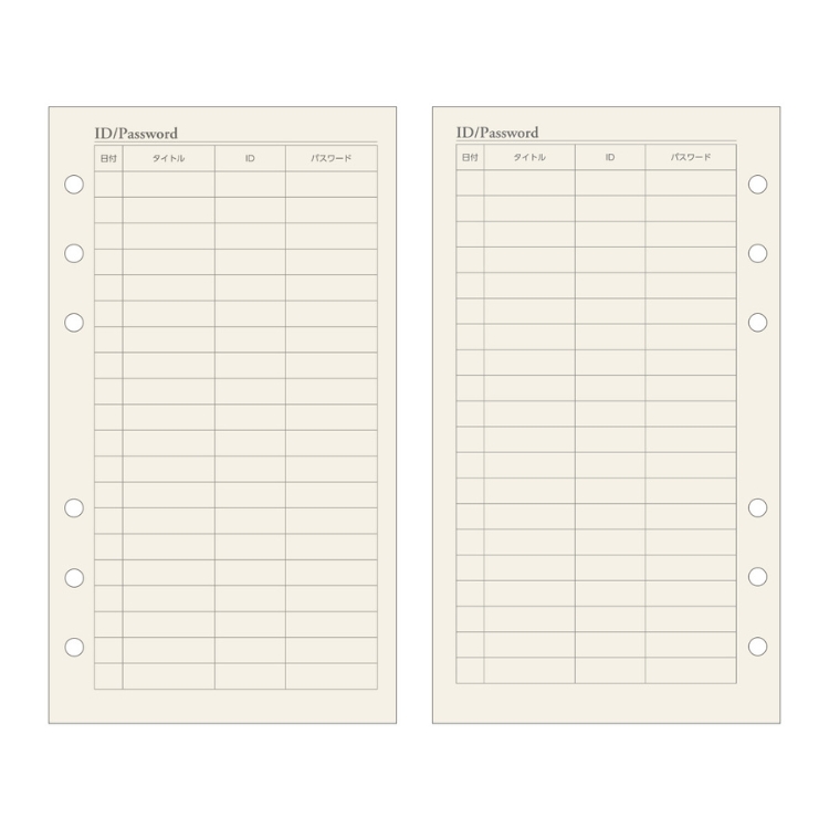左ページには月曜日~日曜日までの1週間分のダイアリー、右ページは曜日に合わせたフリースペースのメモ欄です。左ページは1日のスペースに4行の横罫が入っています。(月曜日始まり)