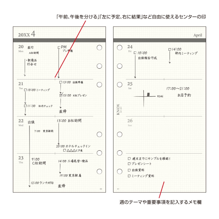 ノックス システム手帳 リフィル 日付入 見開き2週間 バイブルサイズ 521-007