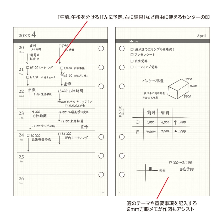 ノックス システム手帳 リフィル 日付入 見開き2週間 バイブルサイズ 521-007