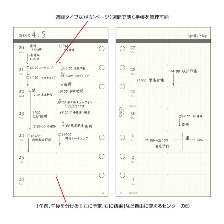 ノックス システム手帳 リフィル 日付入 見開き1週間 バイブルサイズ 521-001