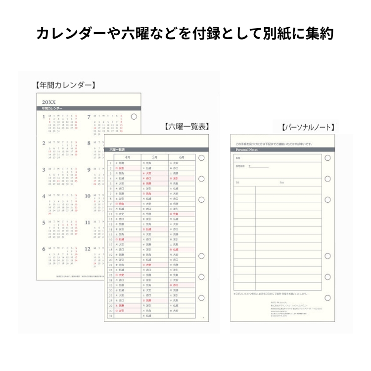 ノックス システム手帳 リフィル 日付入 カレンダー2年間 バイブルサイズ 521-201
