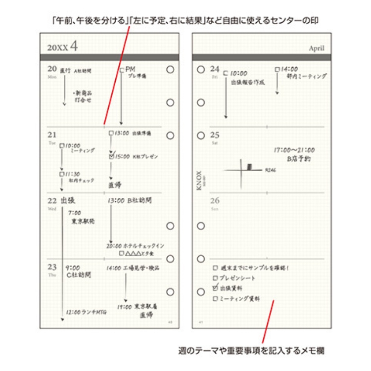 ノックス システム手帳 リフィル 日付入 片面1週間片面メモ ナロー 522-002