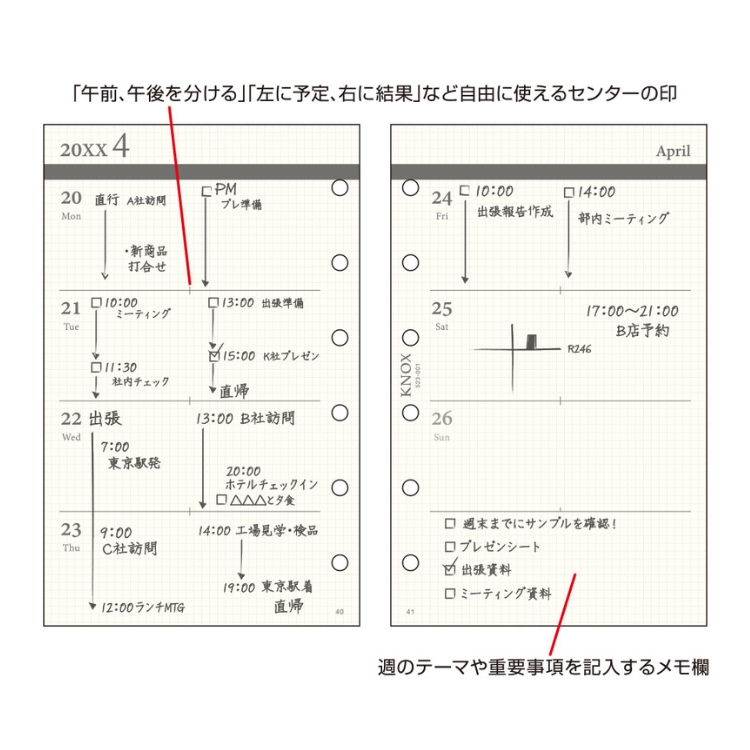 ノックス システム手帳 リフィル 日付入 見開き2週間 ミニ 523-007