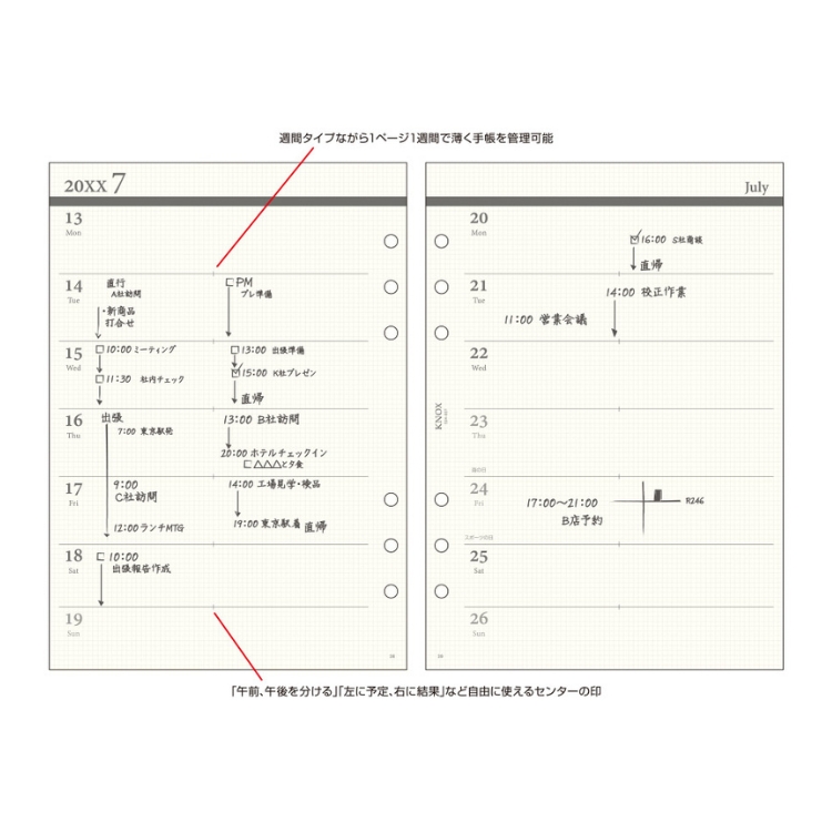 ノックス システム手帳 リフィル 日付入 片面1週間片面メモ A5 524-002