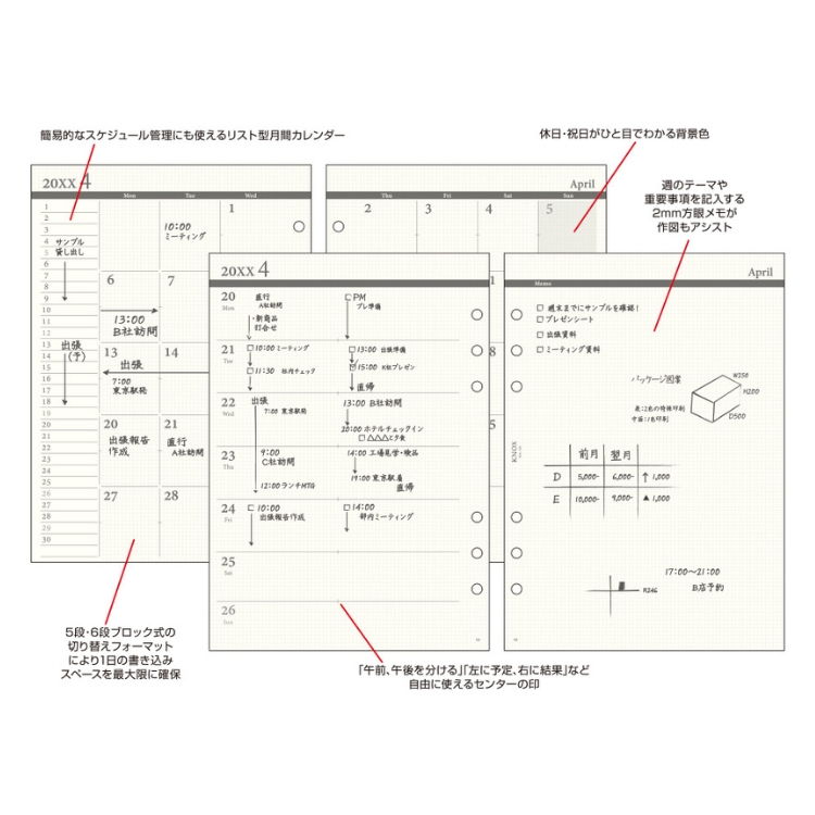 ノックス システム手帳 リフィル 日付入 見開き1ヵ月間ブロック式+見開きメモ A5 524-107