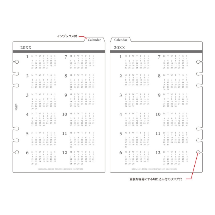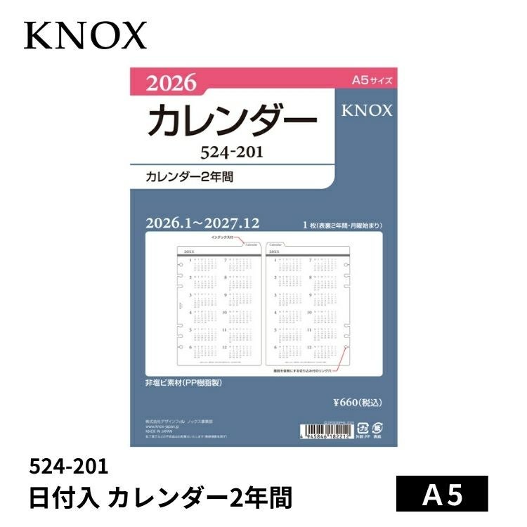 ノックス システム手帳 リフィル 日付入 見開き1ヵ月間ブロック式 A5 524-109