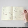 『MDノートダイアリー』と同様の月間スケジュールページと、385ページのフリーページで構成しています。