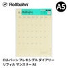 ページを入れ替えられるロルバーン「ロルバーン フレキシブル」にセットして使えるA5サイズのダイアリーリフィルです。専用カバーにセットすると、見開きの左ページがマンスリー、右ページが方眼メモになる機能的な構成です。