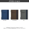 表紙のロゴは空押し。ユニセックスで使いやすく、ビジネスシーンにも馴染む、上品でシックな雰囲気に仕上げています。