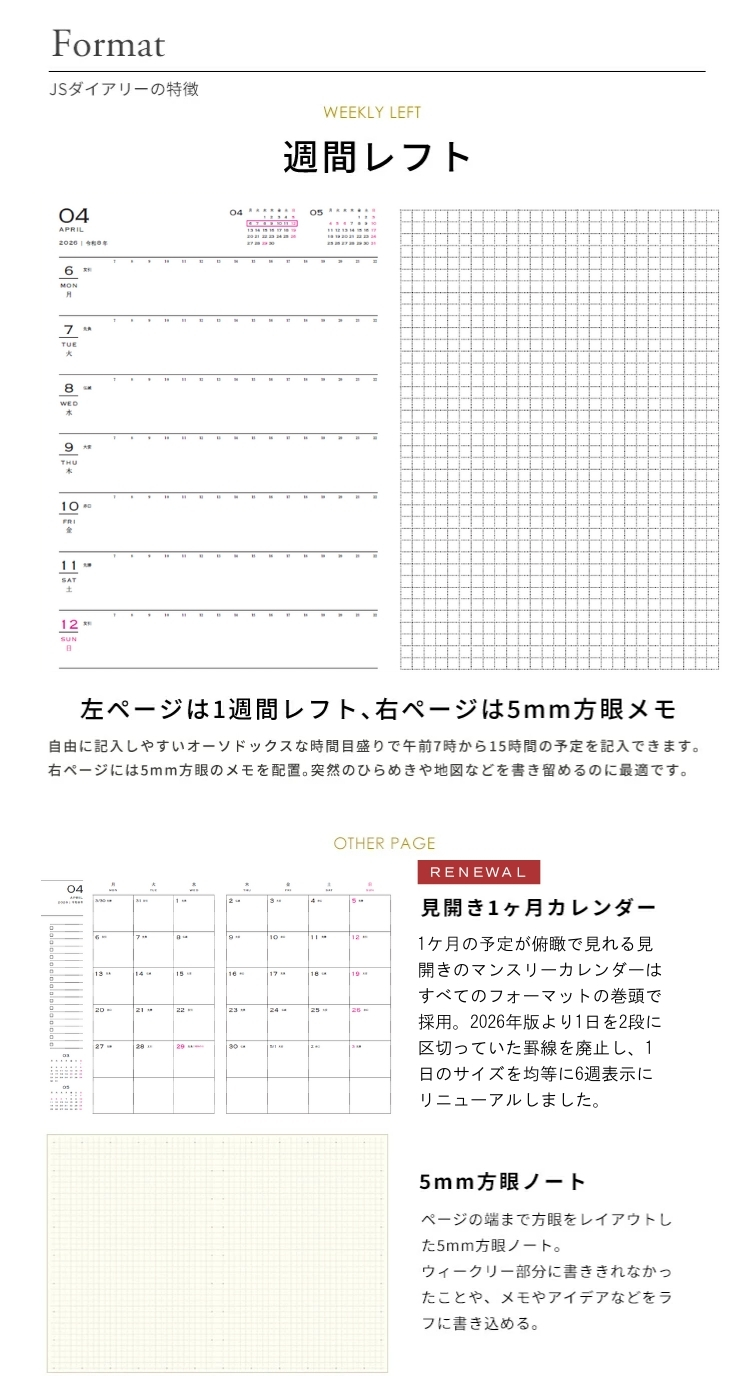 2026年版 JS ダイアリー A5 週間 ウィークリーノート