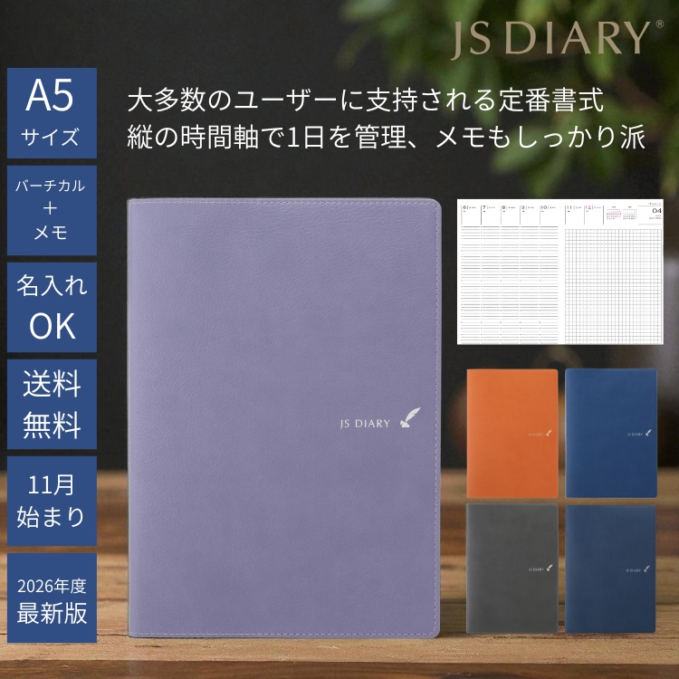 2026年 手帳 JSダイアリー A5 週間 バーチカル+メモ【レーザー名入れ無料】【メール便送料無料】 2025年11月始まり[2025年10月27日から使用可] ◇