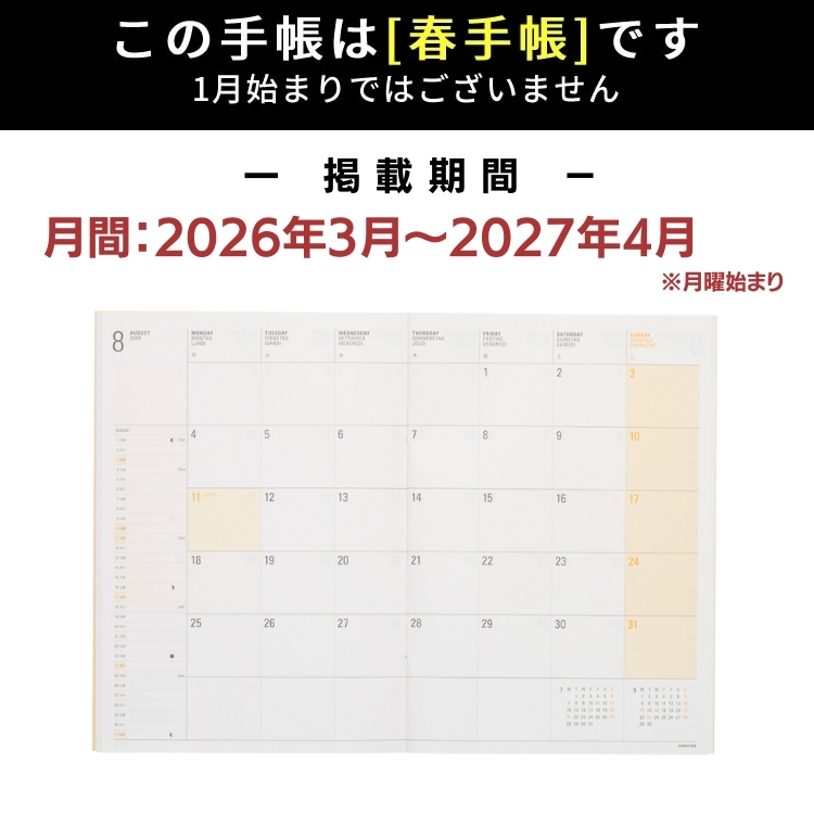 4月始まり 手帳 ハイタイド 週間 バーチカル