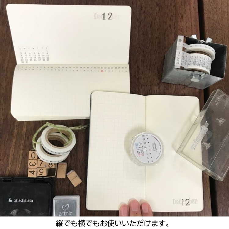 ノートに貼るだけで簡単にカレンダーが作れるマスキングテープ『貼暦』5mm方眼対応の横型タイプです。