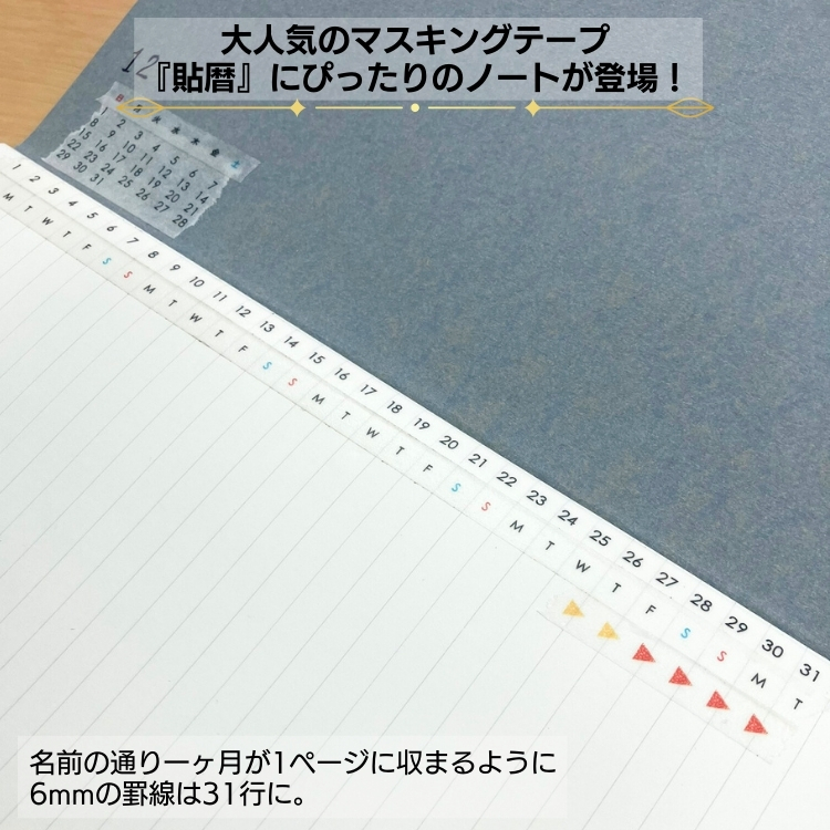 7mm貼暦対応の7mm罫線+無地ノートです。名前の通り一ヶ月が1ページに収まるように7mmの罫線は31行。※サイズはLです。
