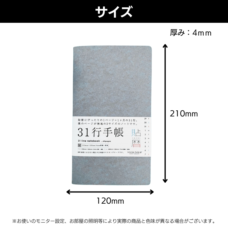 icco nico 31行手帳 Lサイズ 7mm罫線+無地