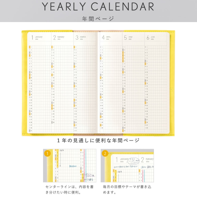 週間スケジュールは不要だけどノートはたっぷり使いたい人向けのマンスリー&デイリーノートの手帳です。