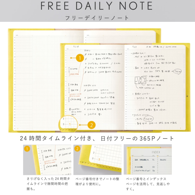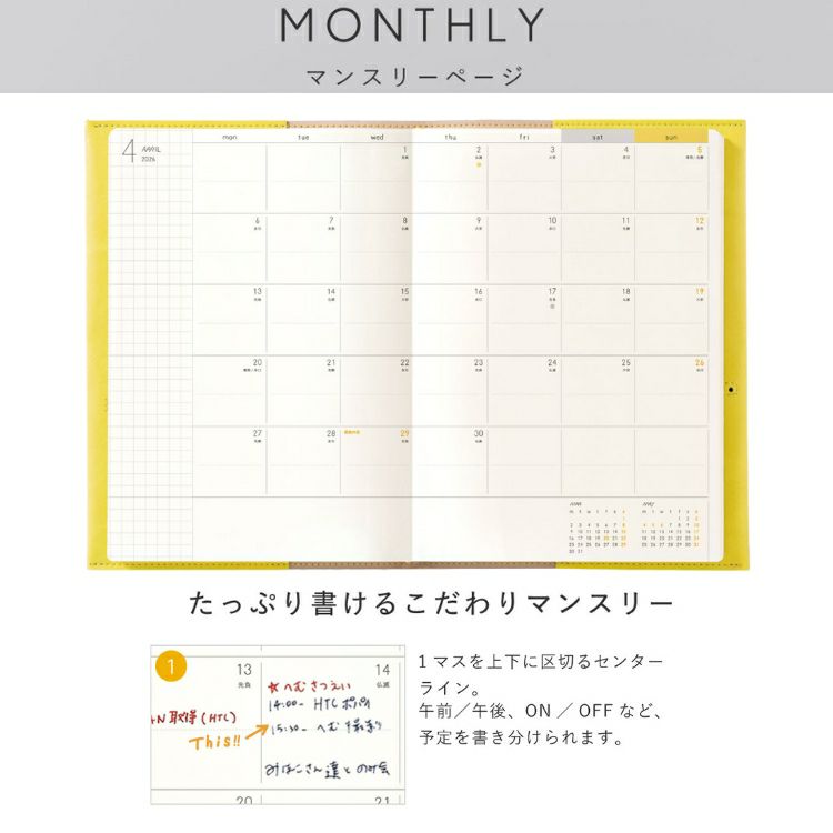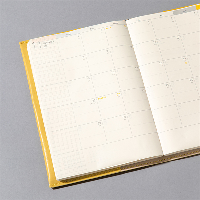 週間スケジュールは不要だけどノートはたっぷり使いたい人向けのマンスリー&デイリーノートの手帳です。