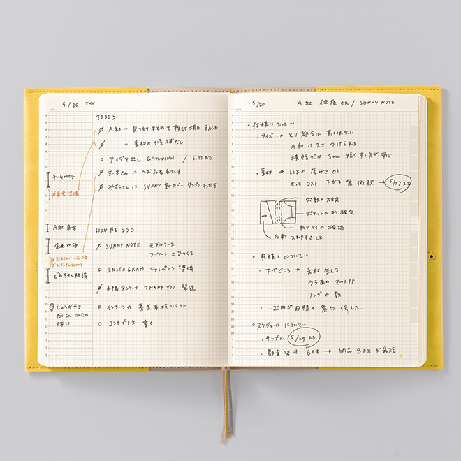 SUNNY手帳のセミバーチカルは時間の記載がなく自由度の高いフォーマット。自分で時間を書き足したり、TODOリスト用に使ったり、縦割のレイアウトを自分なりにアレンジして使えるのが嬉しいダイアリーです。
