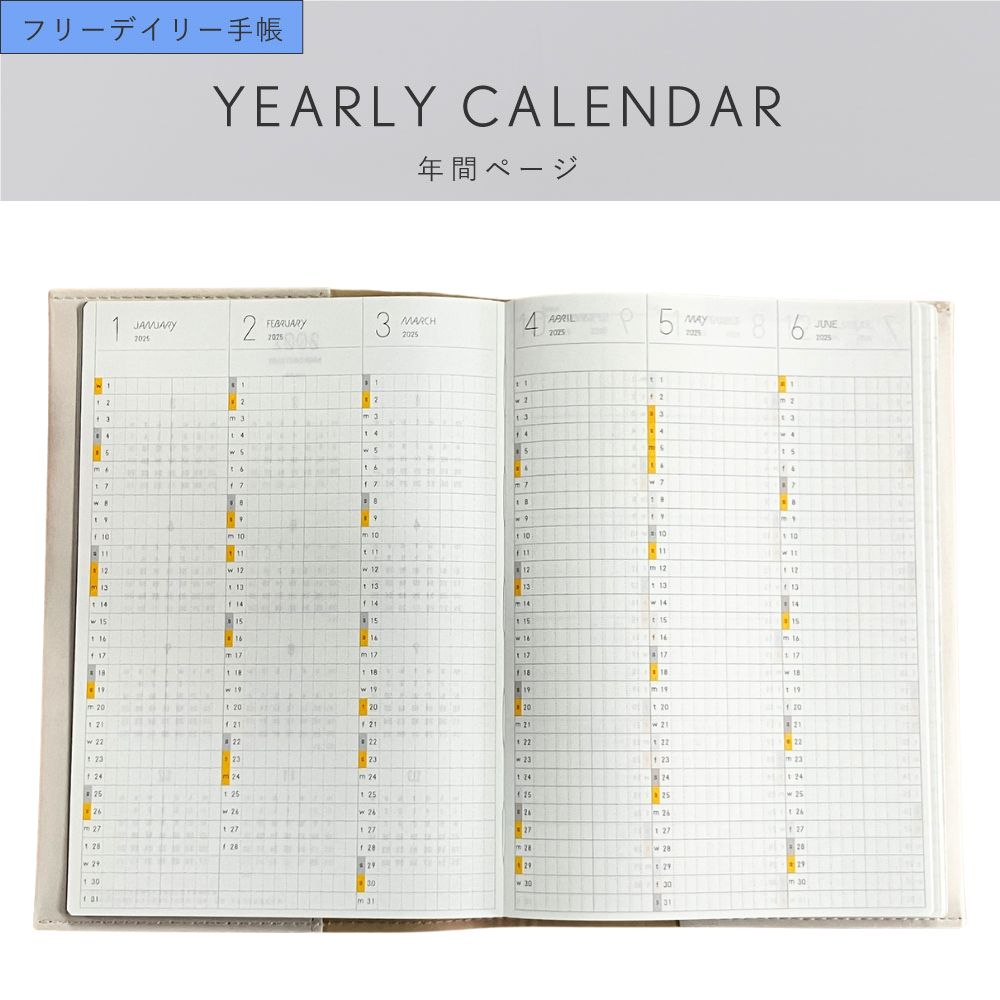 日付入りのマンスリーページがついています全てフリーではなく、年間カレンダー、マンスリーページには日付が入っています。ノートページが足りないというマンスリー手帳ユーザーにとっては「365Pのメモ付きマンスリー」としても使えます。