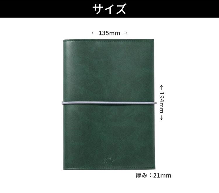 ふんわりコロンとした丸みのあるカバーふんわりコロンの柔らかい合皮カバー。背から出ているゴムバンドでクルンと巻いて手帳を留める仕様。ゴムバンドにはペンを挟むのも便利。カバーには内ポケット付き。書類やカードなどを収納し持ち運べます。※カバー素材が柔らかいため、ゴム跡が表面に残ることがございます。