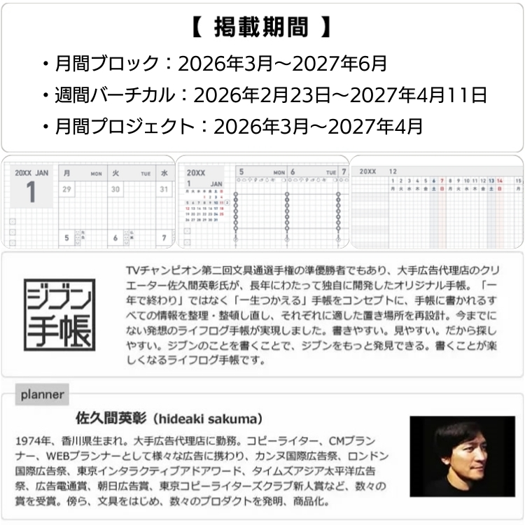 ”一生つかえる手帳”がコンセプトのコクヨのジブン手帳。ビジネスシーンでも使いやすくデザインされた「ジブン手帳Biz mini」はB6スリムサイズでコンパクト。従来の情報が整理しやすいフォーマットはそのままにビジネスの場にふさわしいベーシックカラーのジブン手帳Biz miniはライフログを記録したいビジネスマンにピッタリです。※こちらの商品は、月曜始まりです。
