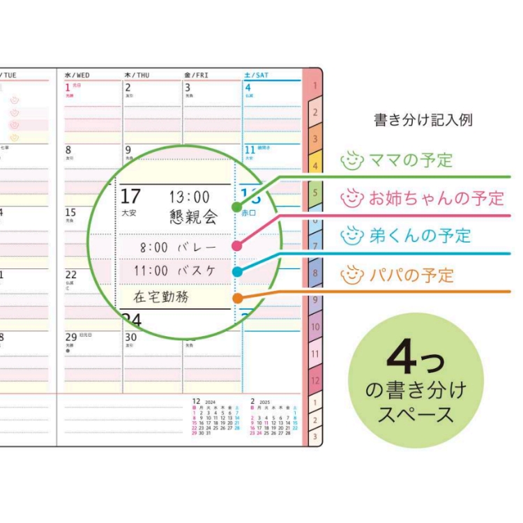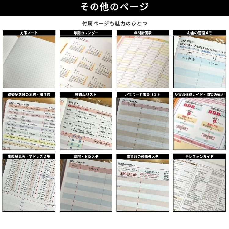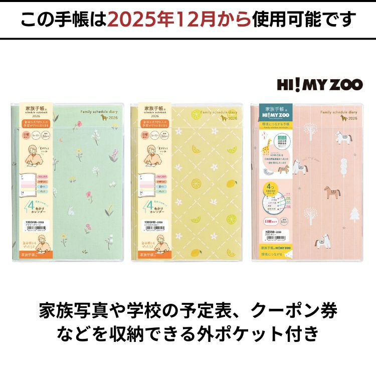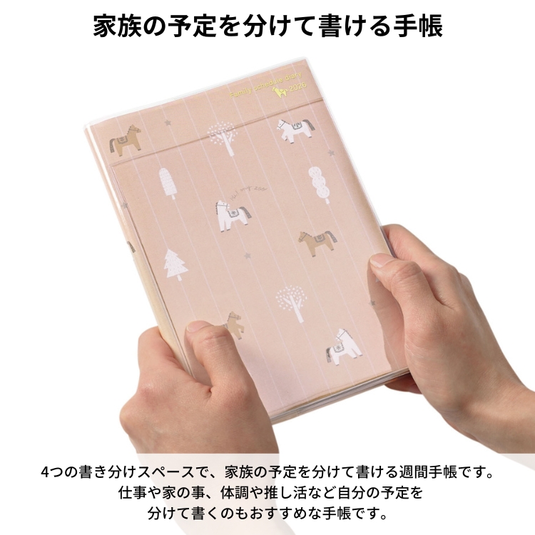 ファスナーポケット付き表紙カバーが嬉しい、たっぷり書き込めて、文字やレイアウトが大きく見やすい家族+家計簿付き手帳。
