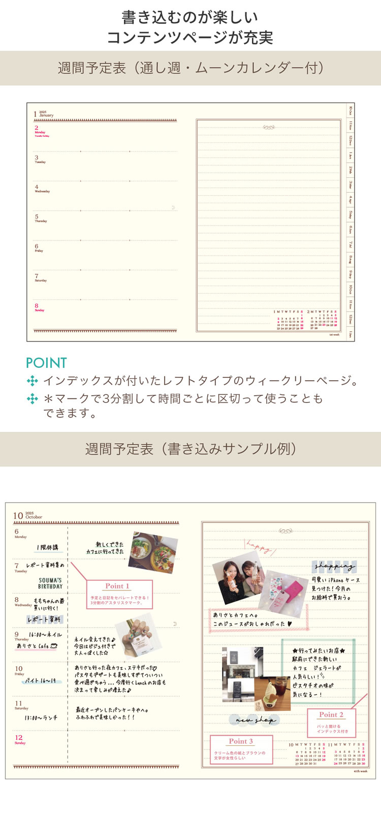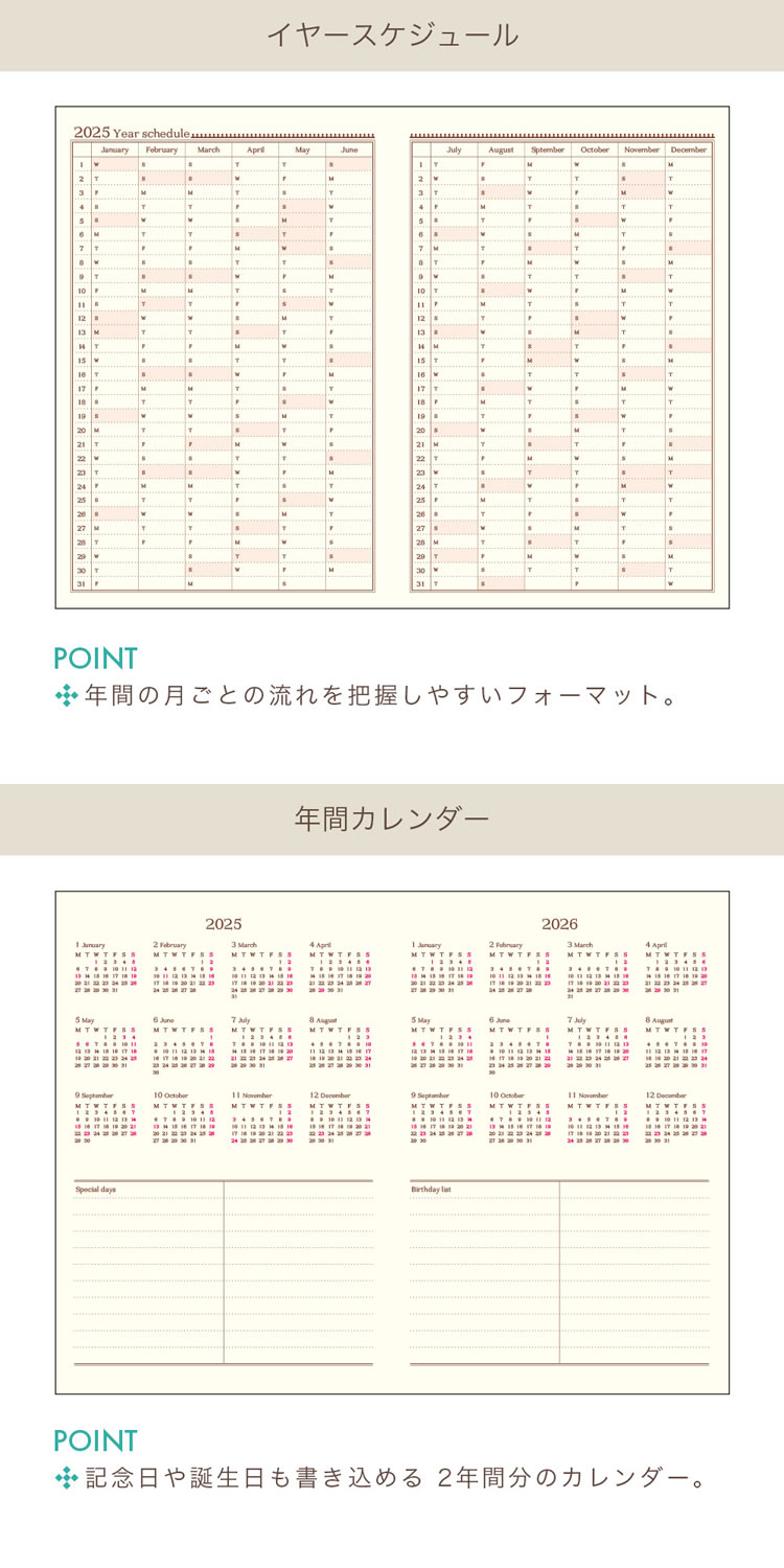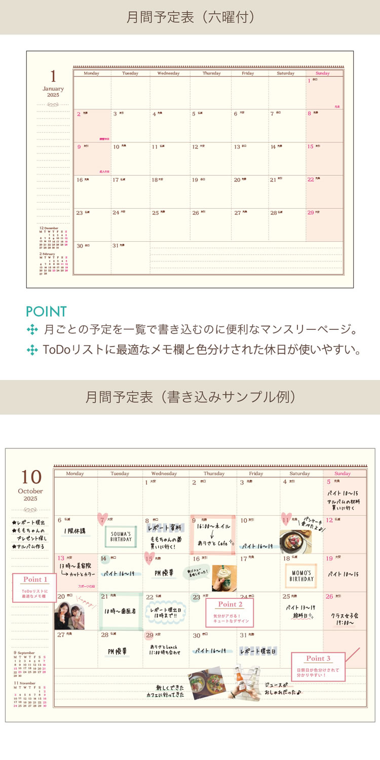 マンスリーで人気のローズデザインがウィークリーに登場!クラシカルで優しいデザインが人気のロングセラーフォーマット。豊富なコンテンツページでなりたい自分に近づこう。