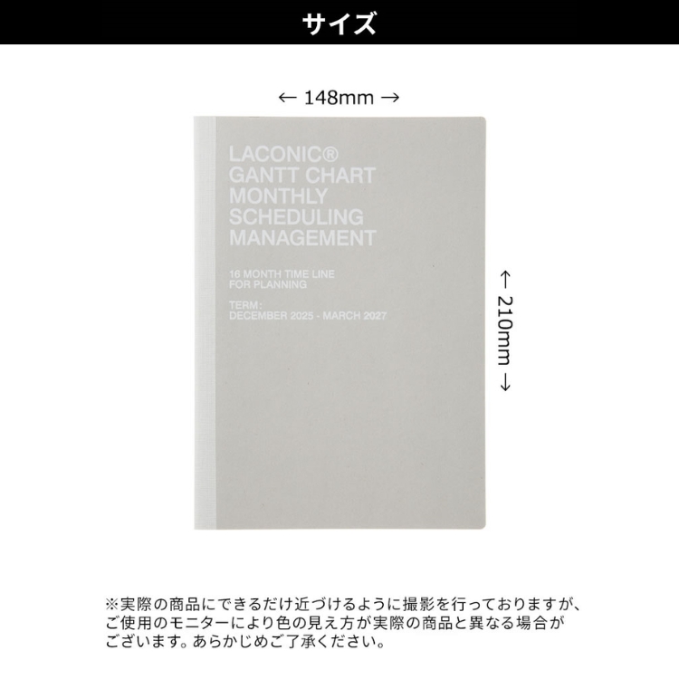 都会的でスタイリッシュなデザインが特徴的なメーカー、LACONIC(ラコニック)のA5変型サイズの見開き1週間ブロックウィークリーです。7日間均等なので土日も予定たっぷりの方にもオススメ!月間ページは見開き1ヶ月のガント・チャートで、タスク管理をするのに向いています。軽くて小さな手帳なので持ち運びにも便利です!