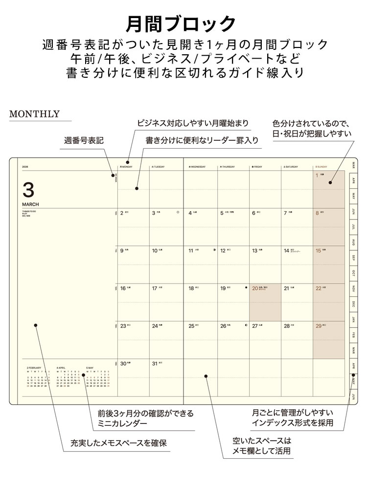 ラコニック B6 3月始まり ブロックインデックスダイアリー