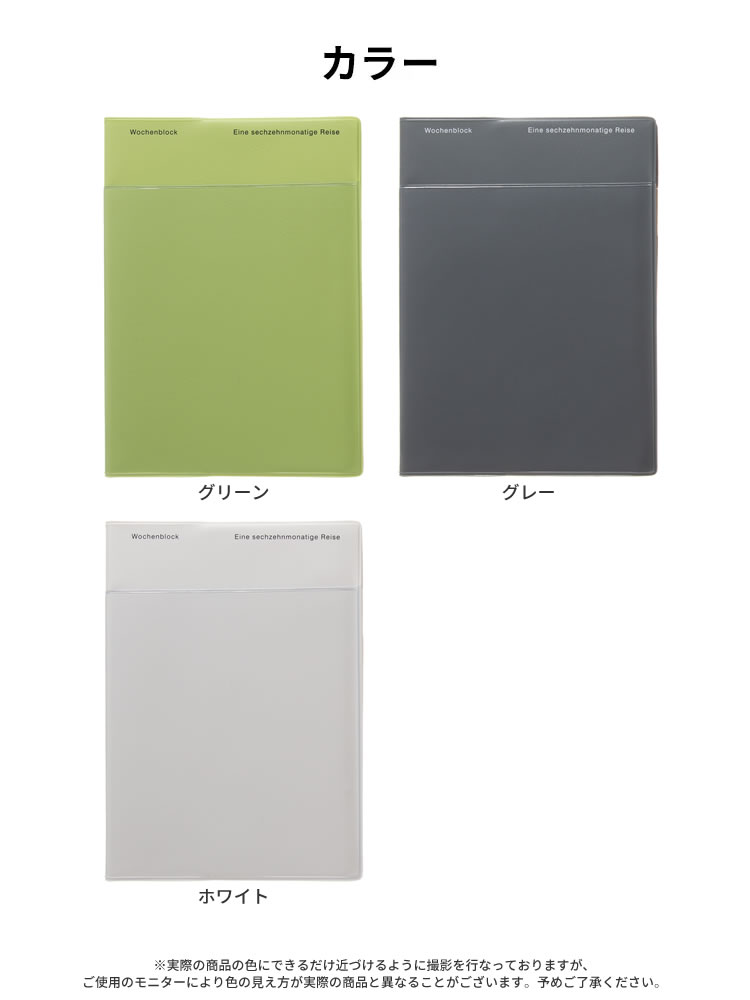 エレガントなタイポグラフィが新鮮な表紙デザイン。機能性に優れた透明ポケットが付いていて、メモや名刺なども入れることができます。
