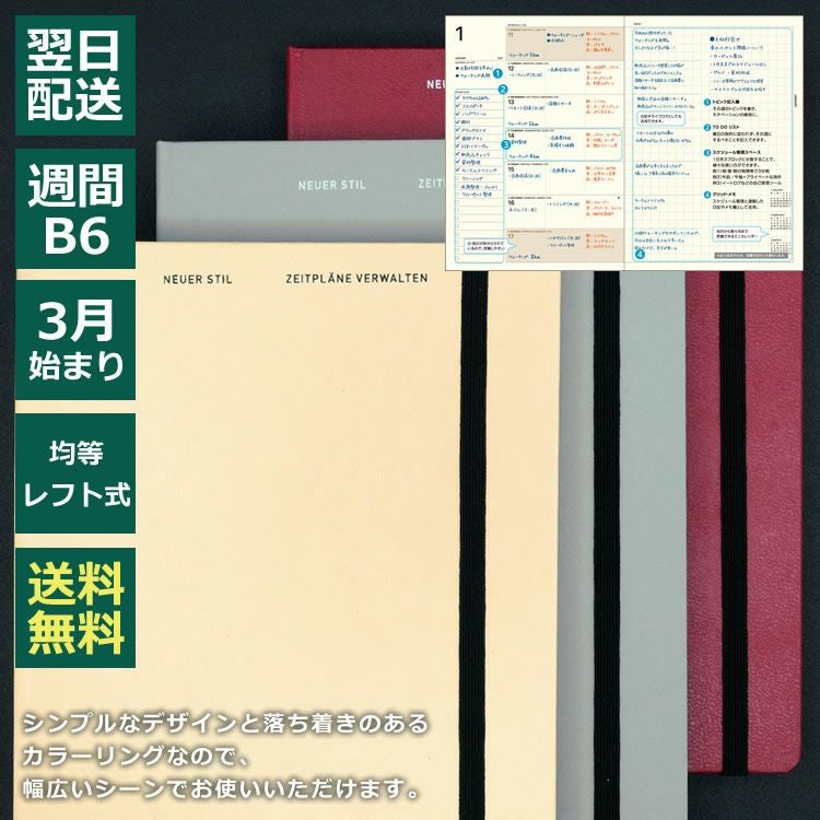 タスク型のスケジュール管理+メモページを組み合わせた毎日の自己管理やライフログにも最適な週間ダイアリー。立ったままでも書き込めるハードカバータイプ。